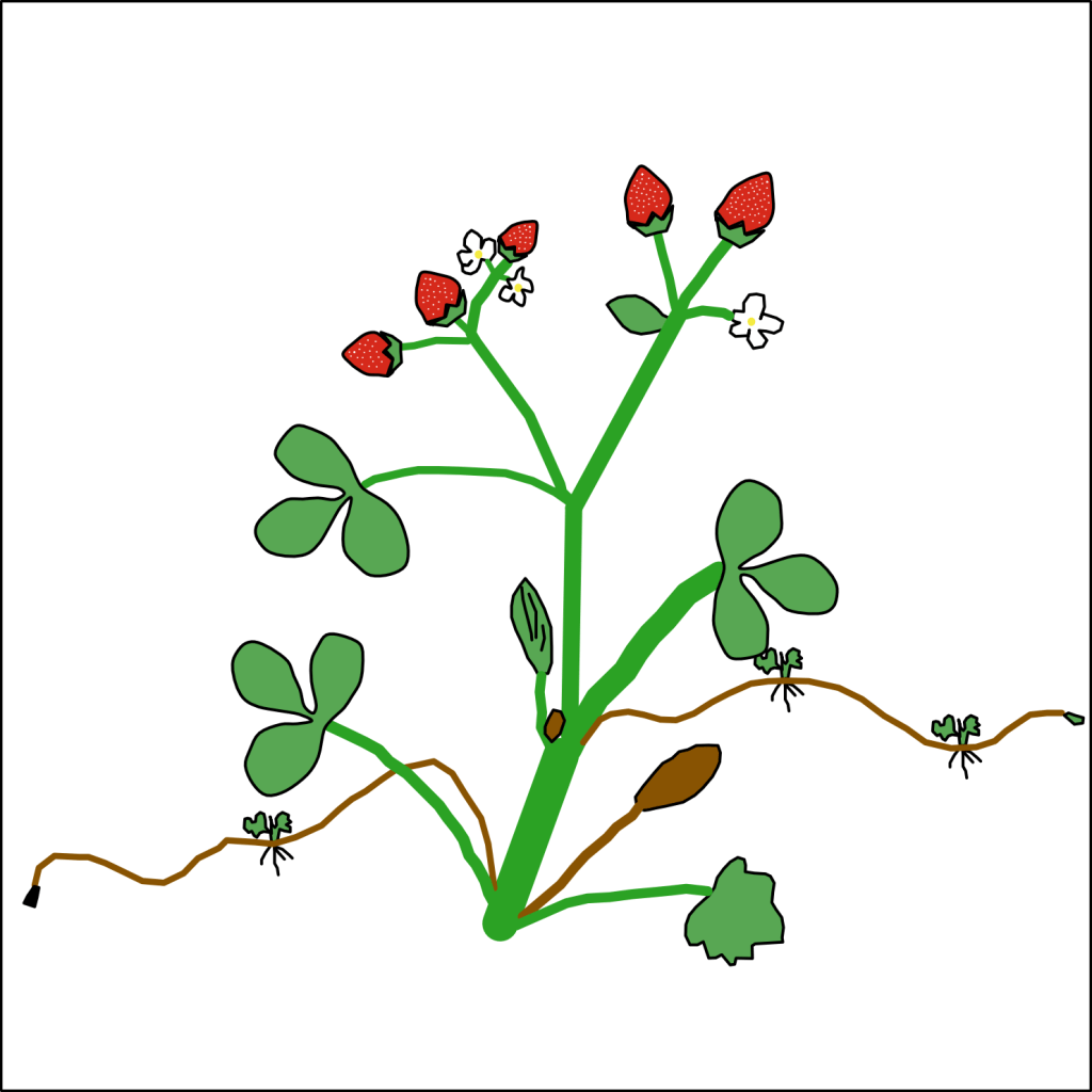 Uitlopers ontwikkelen zich uit zo genaamde okselknoppen die zich vormen in de oksels van de stengels en waaruit zijtakken groeien. Deze takken kunnen verschillende identiteiten aannemen. Zoals de dertien in een dozijn tak die we allemaal als tak herkennen. In aardbeienplanten zijn deze reguliere takken vervangen door twee andere soorten takken. De eerste zijn de zo genaamde ‘branch crowns’ waaraan de bloemen en uiteindelijk de aardbeien groeien. De tweede zijn de uitlopers. Nu kan een aardbeienplant kiezen tot welk type tak de okselknoppen zich ontwikkelen. Hierbij zorgt lange dagen en hoge temperaturen ervoor dat er meer uitlopers komen terwijl er bij lage temperaturen en kort dagen er meer ‘branch crowns’ komen. Maar onderzoekers wilde weten wat nog meer de beslissing beïnvloed.
