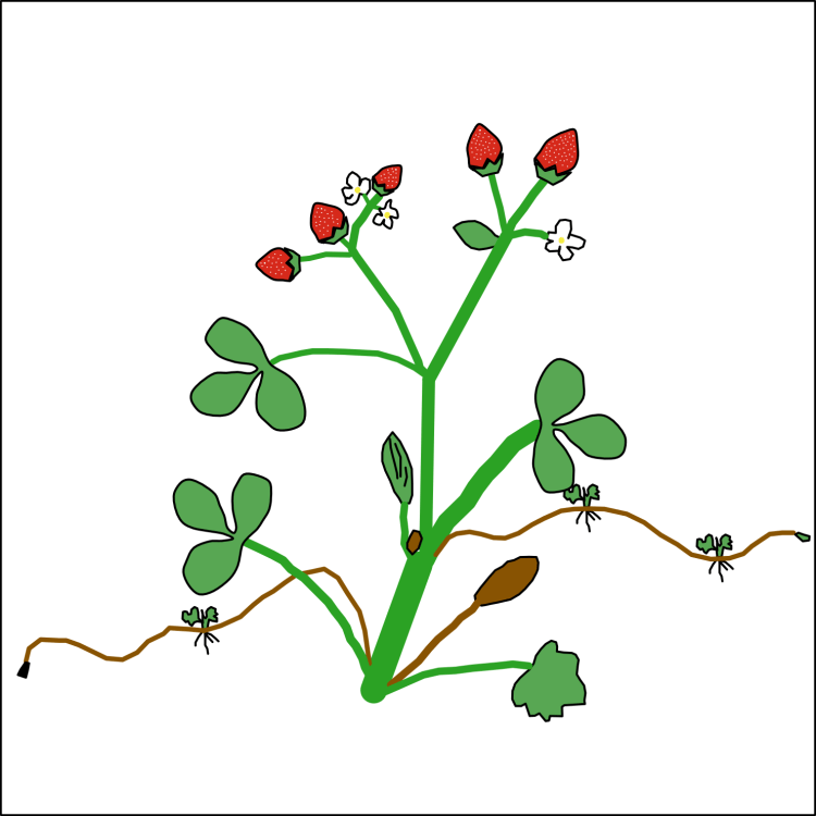 Runners develop from so called auxiliary meristems, meristems that are formed in the hooks and crannies of the stem and from which branches originate. Those branches can adopt different identities. There is the run of the mill branch that we all recognise as a branch. In strawberry plants those regular branches are replaced by two other types of branches. The branch crowns on which flowers and eventually the strawberries form. And the runners. Now a strawberry plant can choose what type of branch the auxiliary meristem develops. It is known that high temperature and long days results in runners, while low temperatures and short days gives strawberry producing crown branches. But scientist want to know what else might influence the plants decision, so they set out to find out.